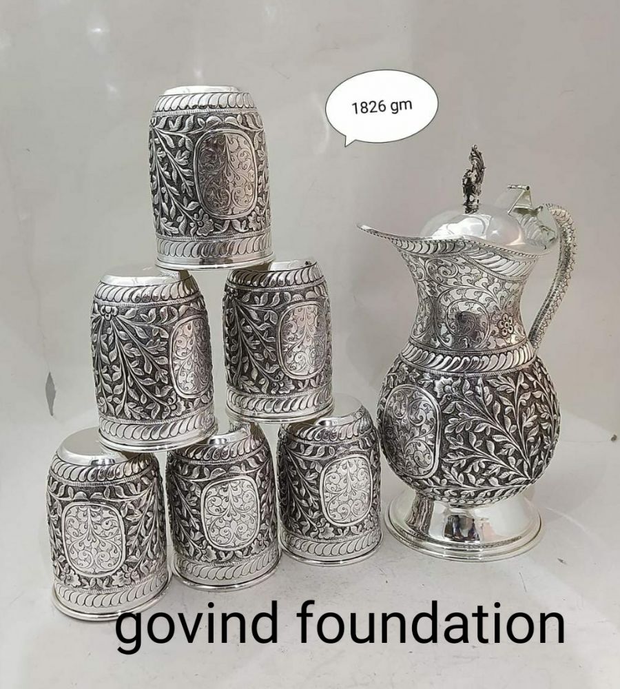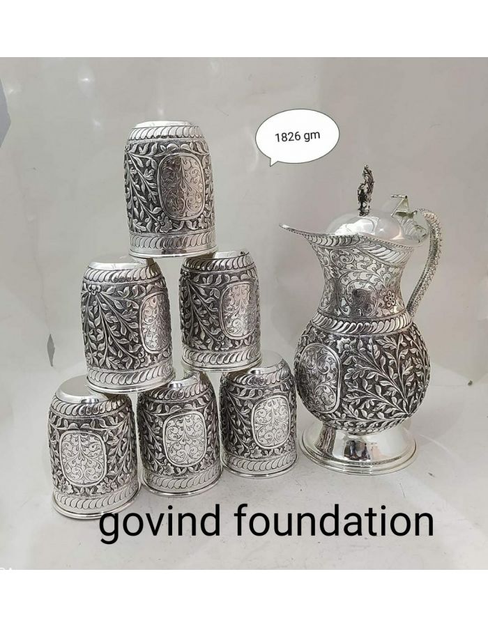 Antique design Pure silver Glass jug set for wedding gift or for Dining