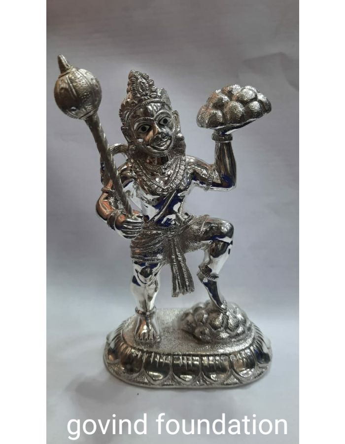 Pure silver fine finish Hanuman idol holding mountain 3 inches