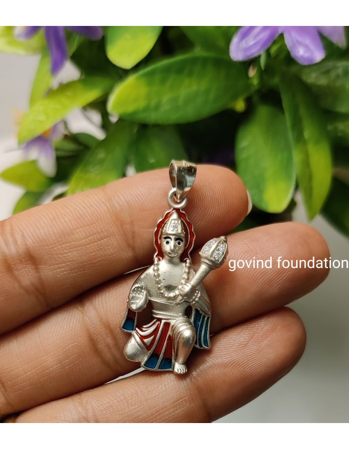 Finish fine art finish colorful Hanuman Locket in pure silver