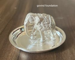 Silver Elephant trunk down 25gm right foot forward chandi ka thoss hathi soond neeche