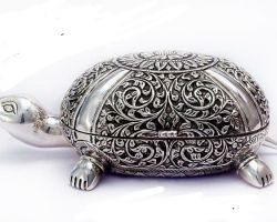 Silver Box Tortoise with 2 section pure silver tortoise kumkum box