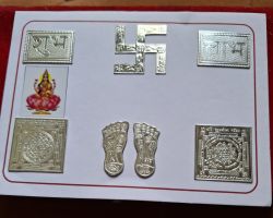 Silver Dhanlaxmi set Shriyantra , Swastik, Charan paduka shubh labh set in pure silver