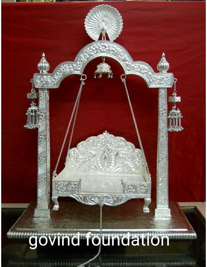 Pure silver jhula peacock top beautiful design spacious swing for laddu gopal and diety