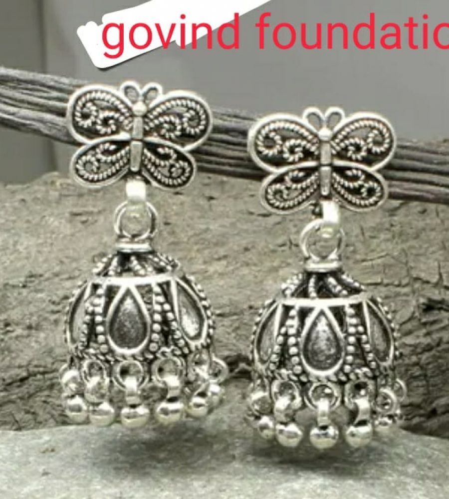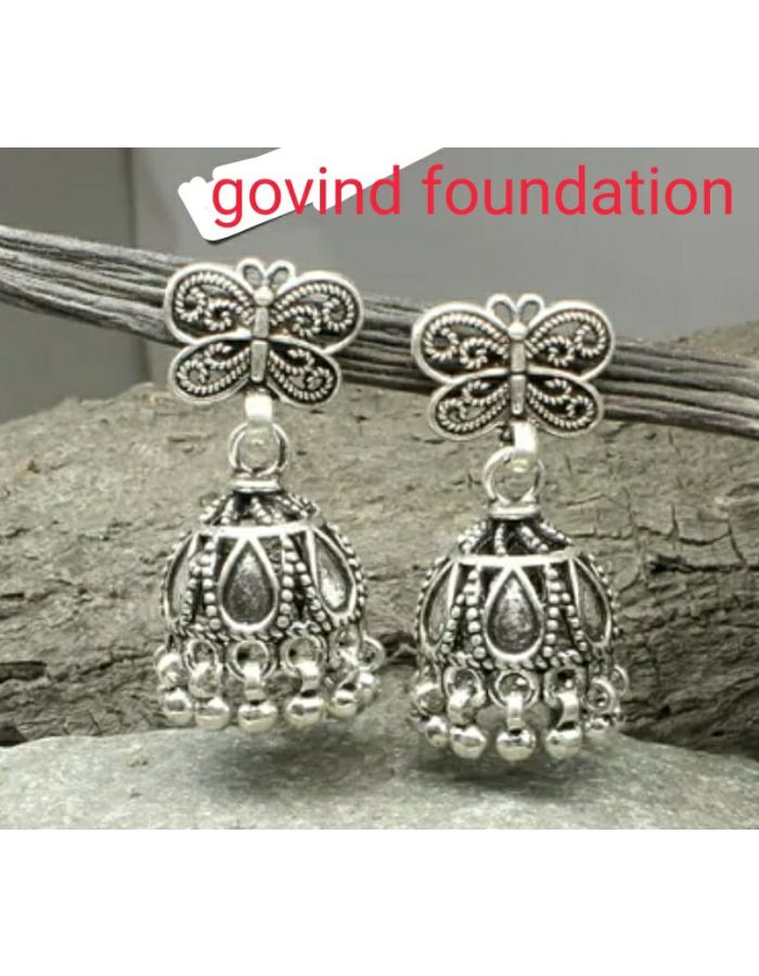 Silver Jhumki Earrings. It is a High-Quality Oxidised Silver Jewellery Embellished with Kundan. Perfect for Weddings, Party, Festivals, Traditional Occasions. Colour: Silver Package Contains: 1 Pair of Earring Material: Material: Skin Friendly Metal Alloy Earrings Length: Caring for your Fashion Jewellery: We, at Karatcart, take care of every piece of jewellery so that you don't spend hours caring for them. But do remember, fashion jewellery lasts longer when kept dry and free of chemicals. Follow this simple rule: Your jewellery should be the last thing you put on and the first thing you take off