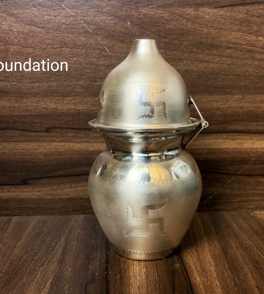 Pure Silver Pooja Kalash with lid , you can keep at Pooja Ghar fill with water for deity