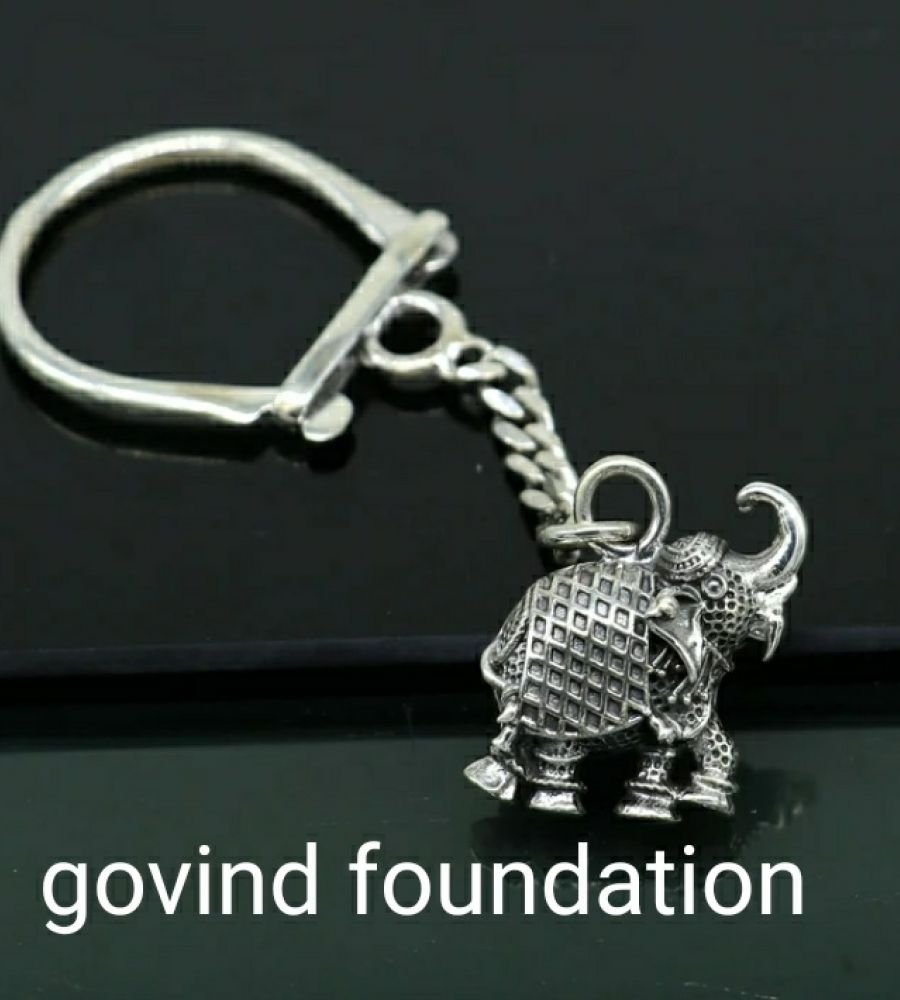 Pure silver elephant keychain for gift ,home and office keyring in pure silver