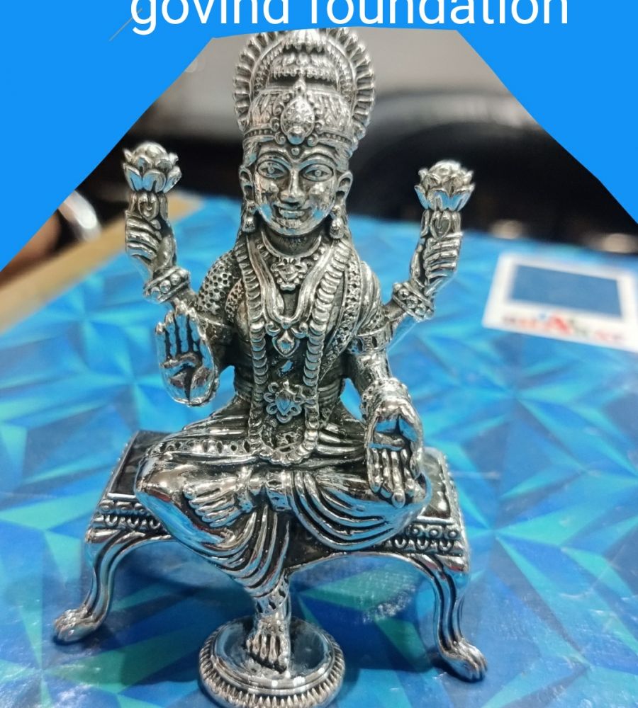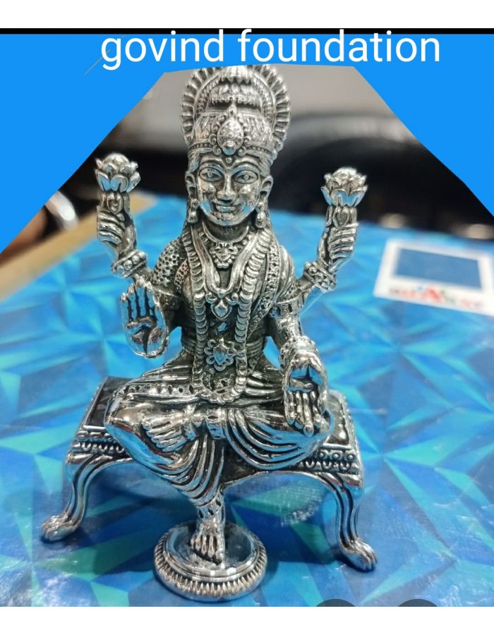 Finishing fine finish with sharp features pure silver Laxmi idol smiling face 2 inches on silver chowki