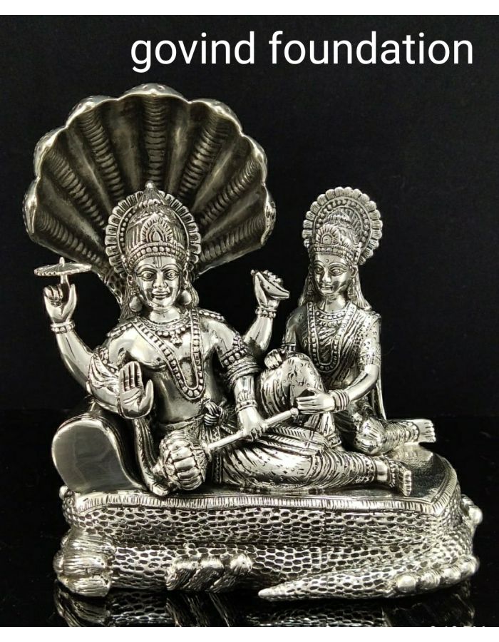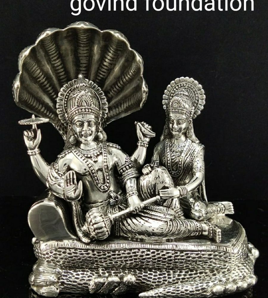 Pure silver Laxminarayan idol Sitting on Sheshnaag fine fine Laxminarayan statue in Sterling silver