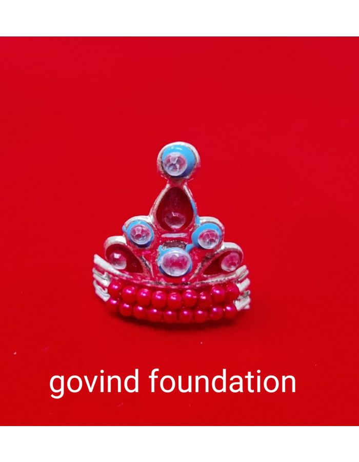 Pure silver crown with stone work mukut for diety and Laddu gopal