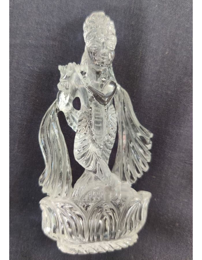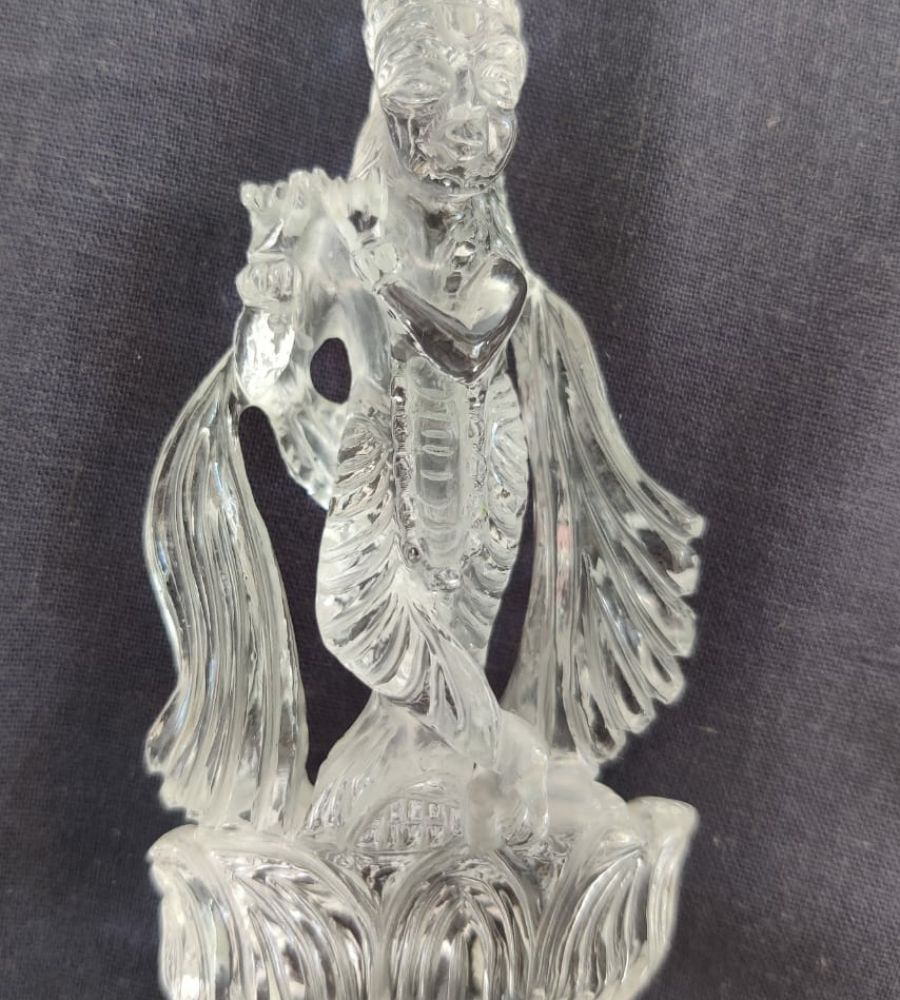 Original sphatik krishna idol with sharp features and clear carved crystal krinshna idol