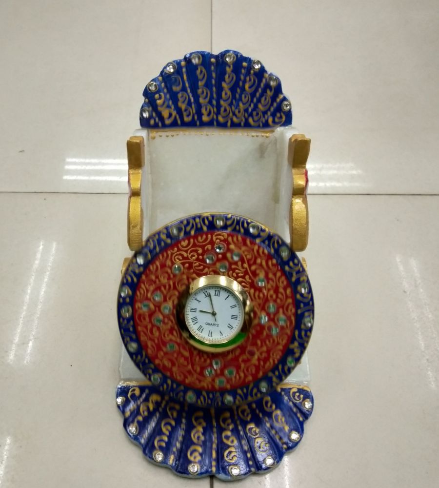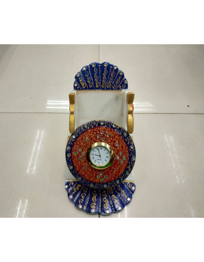 beautiful and unique table clock of carving on marble with blue and red color