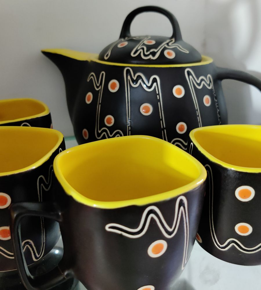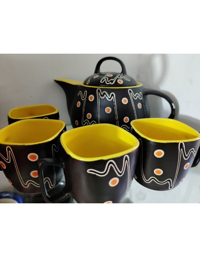 Tea cup kettle set black ceramic