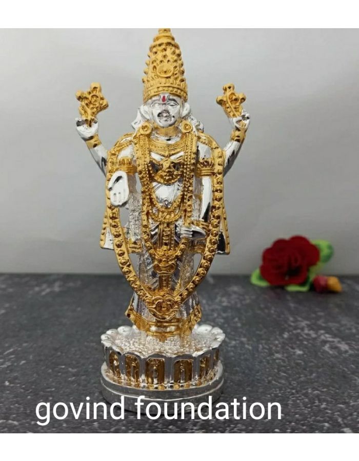 Fine finish Trupati balaji idol in pure silver with gold polish