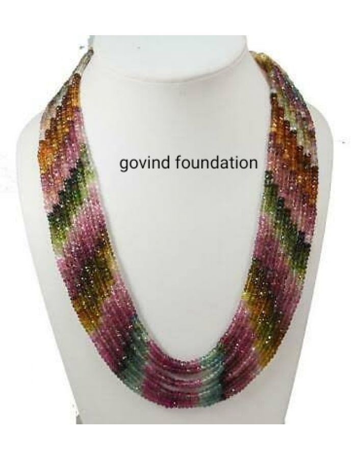 Beautiful multi colour 9 lines tourmaline beads necklace