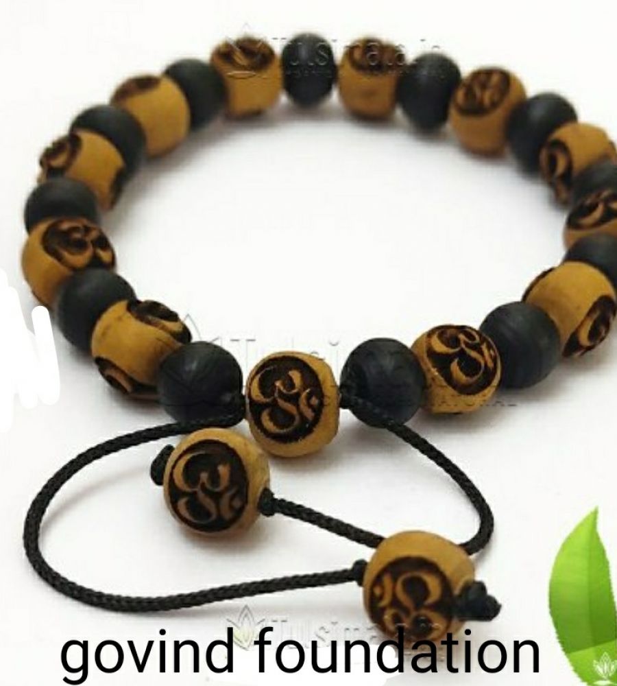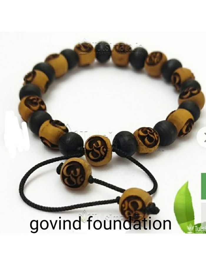 Beautiful hand carved om on pure Tulsi wood bracelet