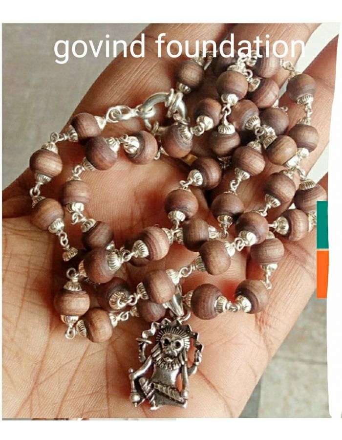 Design original Tulsi bead with silver caping and chain with silver Hanuman locket