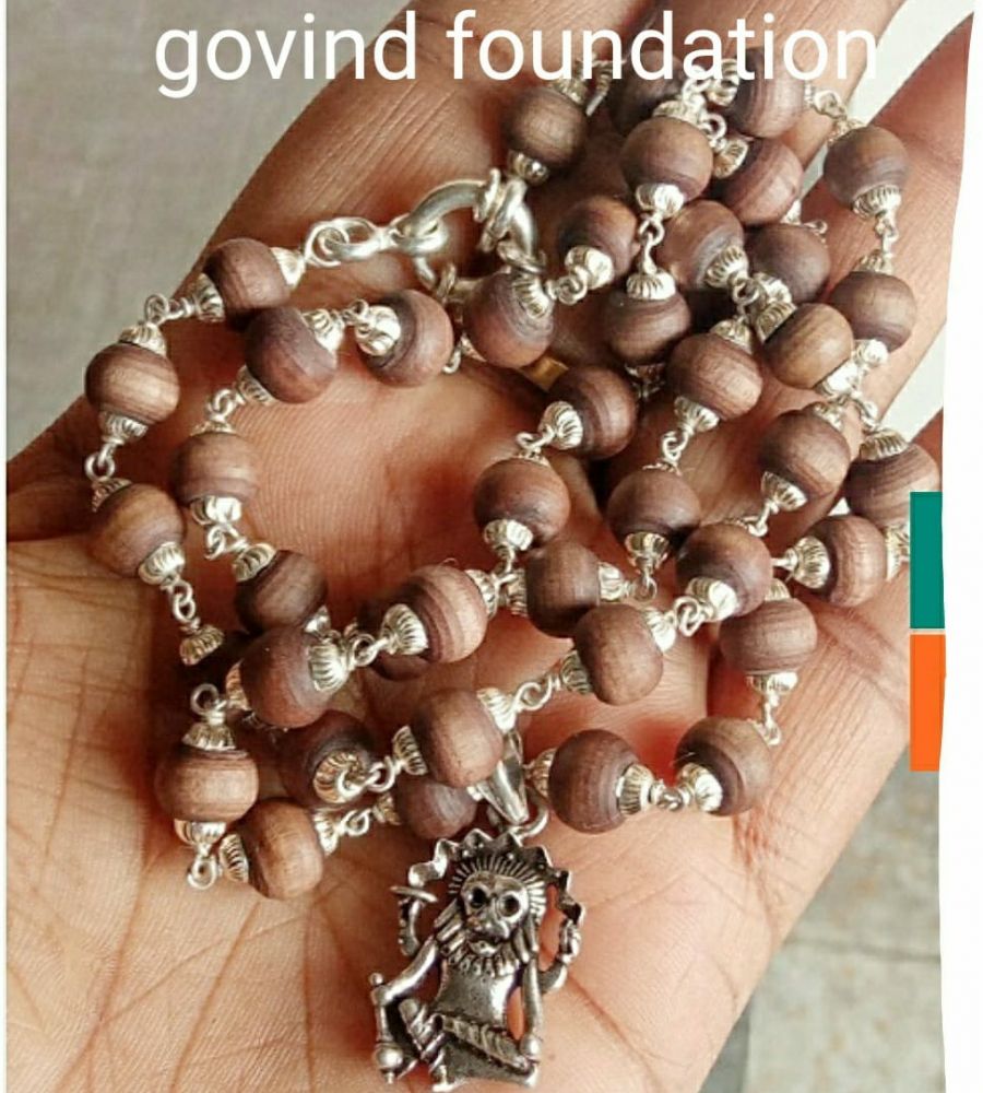 Original Tulsi mala with silver caping chain and Hanuman locket