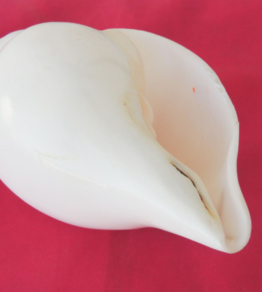 The shankh / shell that open towards left hand are called vaamavarti shankh. It has loud sound. The special geometry of this kind of natural shankh creates positive energy and remove negative energies, it protects from evil spirits. The blowing of conch increase respiratory capacity and good for lungs.