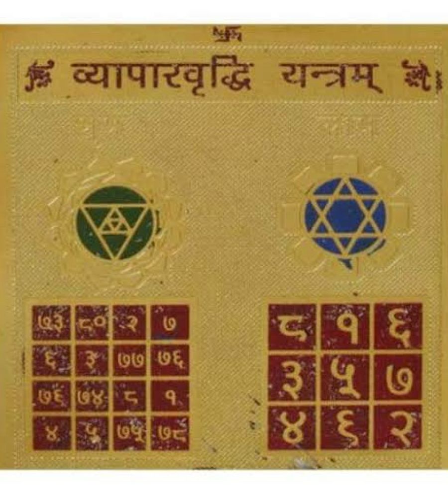 The Vyapar Vridhi Yantra brings good luck and fame in your life. This yantra is helpful to scale new heights of finance and wealth. The yantra open the doors of profits, high sales, turnovers and progress. The yantra gives prosperity and success in business According to the Damar Tantra, the structure of the Vyapar Vridhi Yantra (Vyapar Vridhi Yantra Benefits) has been done in a very strange way, this Yantra is inhabited by the powers of Kubera Ashtalakshmi, Kankavati etc., worshiping the Vyapar Vridhi Yantra (Vyapar Vridhi Yantra Benefits) gives wealth and Lakshmi, hence the this Yantra is also called Dhandata Yantra.Vyapar Vridhi Yantra (Vyapar Vridhi Yantra Benefits) is a very miraculous device, keeping this Yantra in the shop or office cash box keeps the arrival of Dhan Lakshmi always and the business becomes twice or sometimes four times. This Vyapar Vridhi Yantra has been considered to be the best for debt relief and release of money stuck in business. कई बार जन्मकुंडली दिखाकर और वास्तु पूजन करने पर भी व्यापार में लाभ नही होता, एक तरह से व्यापार फलता नही है, व्यापार चलाने की लिए कर्ज लेना पड़ता है, खर्चे वही के वही रहते है और आमदनी होती ही नही है, यदि ऐसी स्तिथि हो तो ऐसी स्तिथि में प्राण-प्रतिष्ठित व्यापार वृद्धि यंत्र (Vyapar Vridhi Yantra Benefits) को दुकान या ऑफिस के गल्ले में किसी भी गुरुवार के दिन स्थापित करना चाहिये व्यापारियों, दुकानदारों को इस यंत्र की विधिवत प्राण प्रतिष्ठा कर उसे अपनी दुकान या कार्यालय में विधिपूर्वक स्थापित करना चाहिए, व्यापार में यदि दिन-रात परिश्रम करते रहने पर भी उचित लाभ नहीं हो रहा है या घाटा हो रहा हो तो उन लोगों को ऐसे में व्यापार वृद्धि यंत्र की स्थापना पूर्व अथवा उत्तर दिशा में करनी चाहिए।