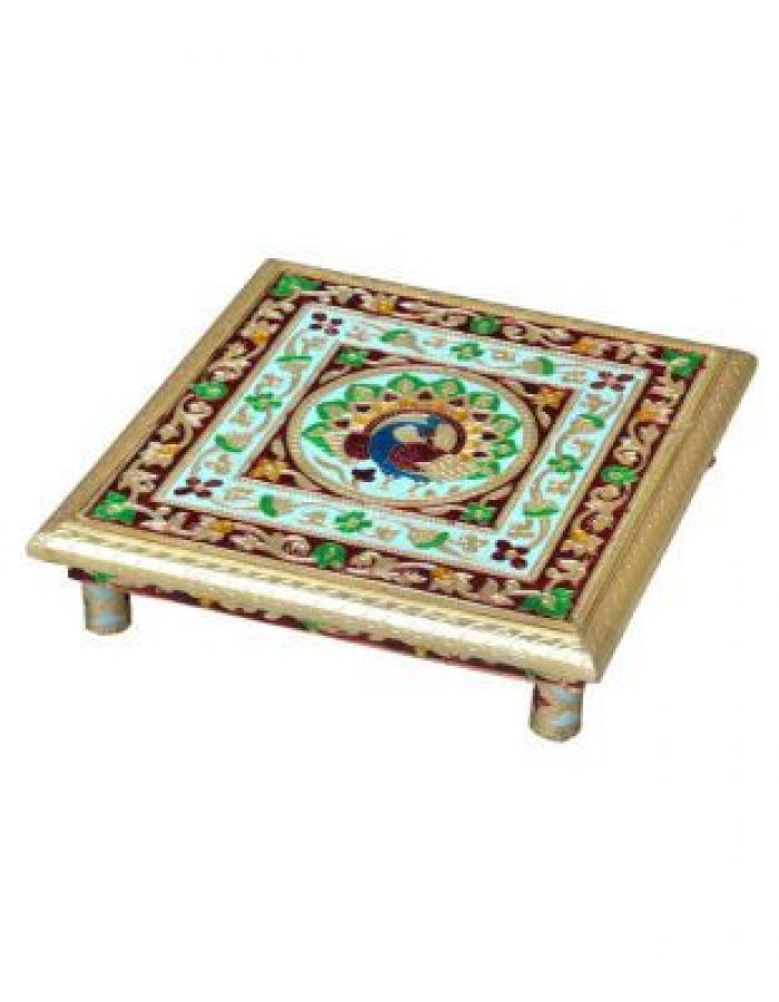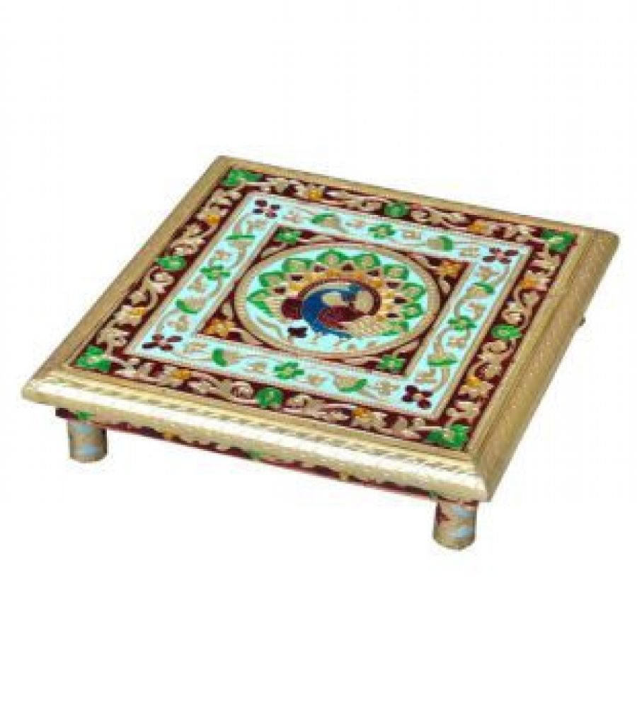 Golden meenakari work on choki beautiful design good looking choki for Pooja , showpiece