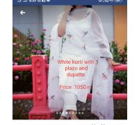 White kurti with plazoo, dupatta CODE 8