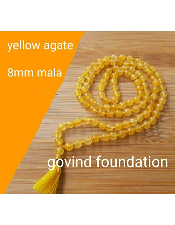 Yellow agate Benefits - This mala is useful for those who want to strength God Brihaspati or the Jupiter planet.It is used in restoration of energy and is often used for healing the body and the mind.It brings prosperity and success.